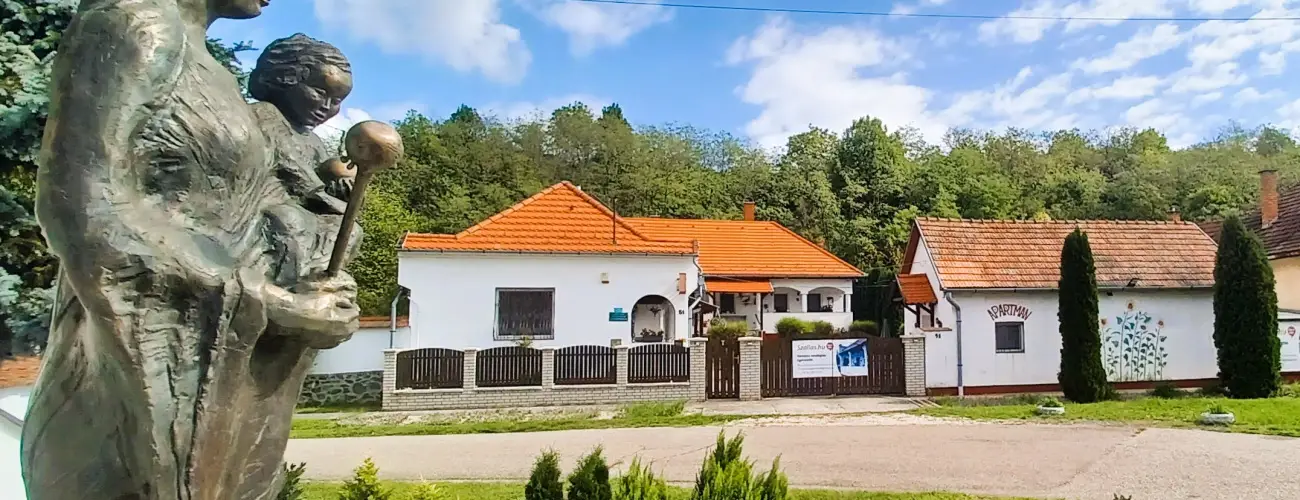A kerthelyiség mellett található kemencében készülő finom ételek odavonzzák a faluba látogatókat.