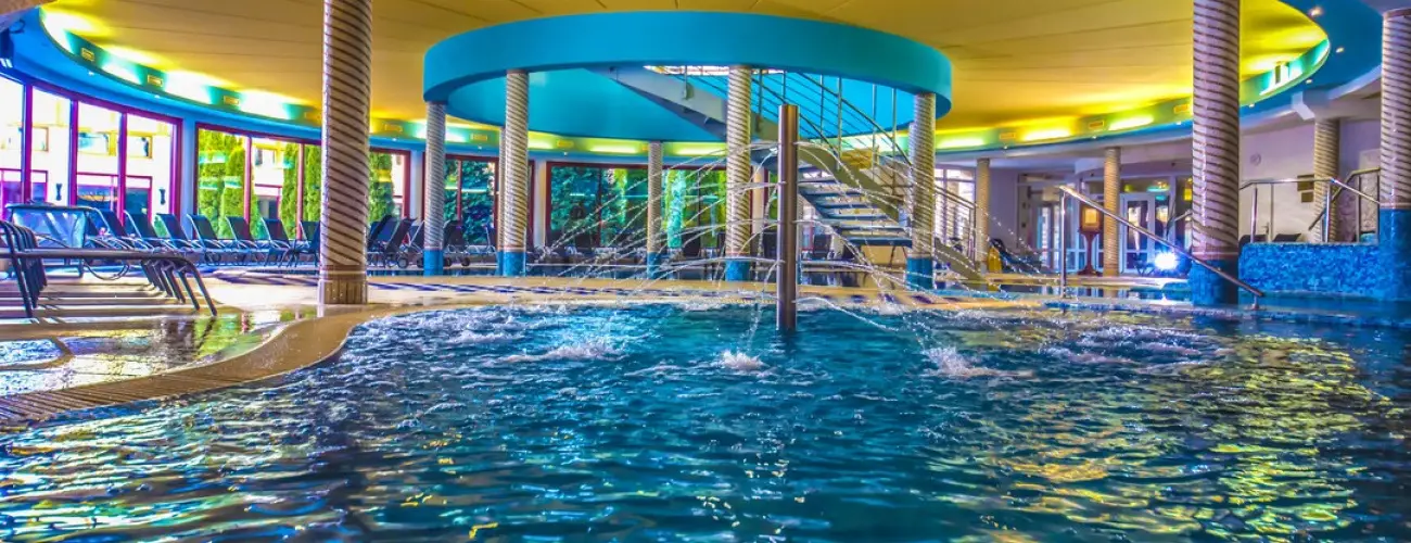 fedett úszómedence szabadtéri úszómedence szauna Fitnessz center Spa & wellness center fodrászat kozmetika manikűr masszázs pedikűr pezsgőfürdő szépségszalon szolárium termálvíz, illetve gyógyászati létesítmény élménymedence gőzfürdő infraszauna finnszauna gyerekmedence csúszda napozóterasz gyógymasszázs nyirokmasszázs thai masszázs aromaolajos masszás frissítő masszázs úszómedence gyermek medence élménymedence élménymedence gyermek medence úszómendce gyermek medence