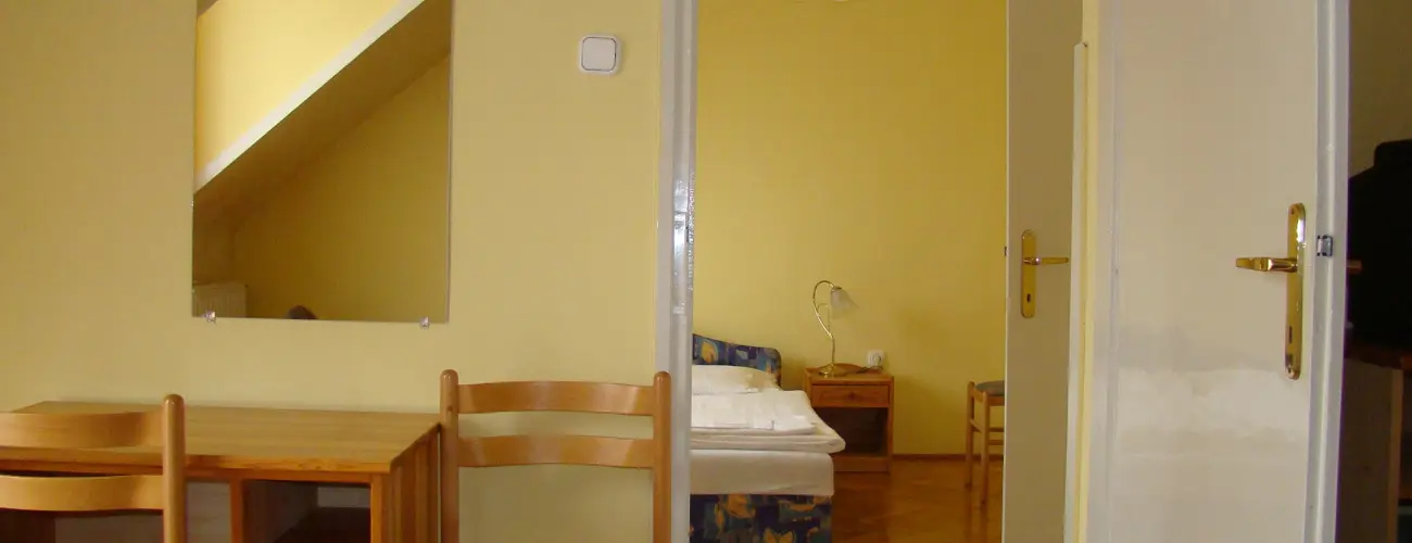 Az apartman 25 db részben pótágyazható szobával rendelkezik, valamint két családi szobával várja vendégeit. Mindegyik szoba televízióval, telefonnal, mini hűtőszekrénnyel és zuhanyzós fürdőszobával felszerelt. Az emeleti szobák légkondicionáltak.